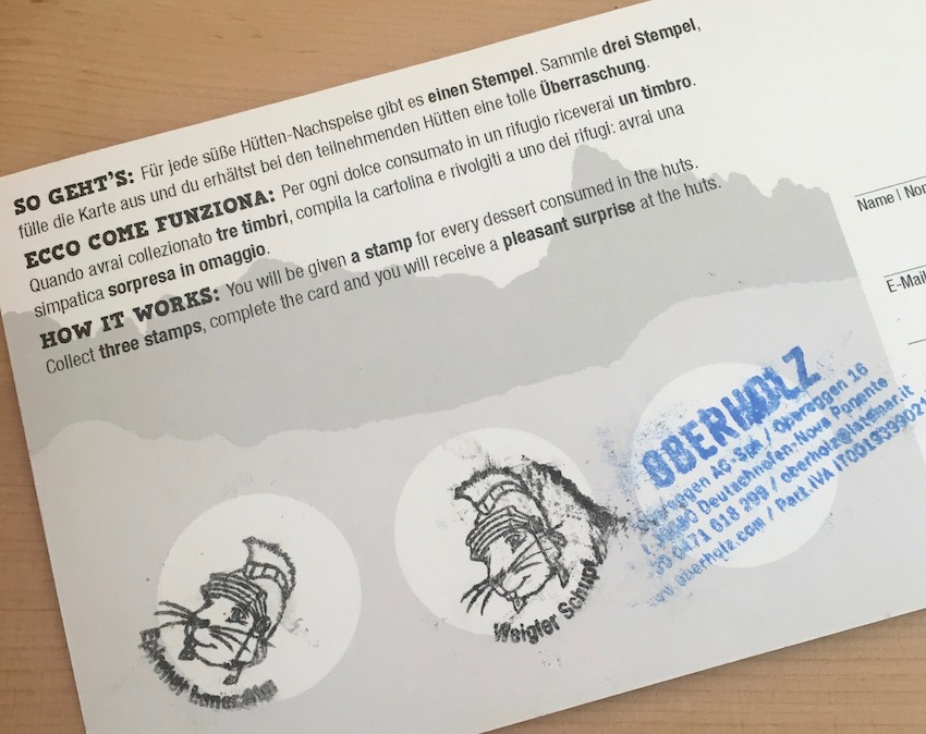 Und so geht’s. Für jede süße Hütten-Nachspeise gibt es einen Stempel.