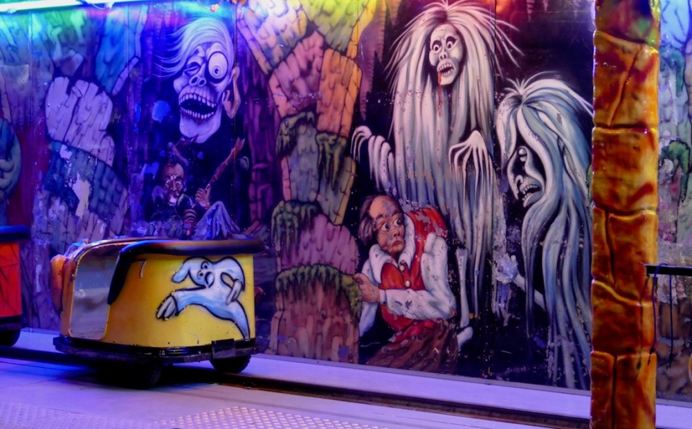 Für alle Mutigen abends mit echten Gruselgestalten, die einen während der Fahrt in den kleinen 2er Waggons anstupsten oder mit dem Staubwedel übers Gesicht streiften. Eine geniale Idee, die super angenommen wurde.