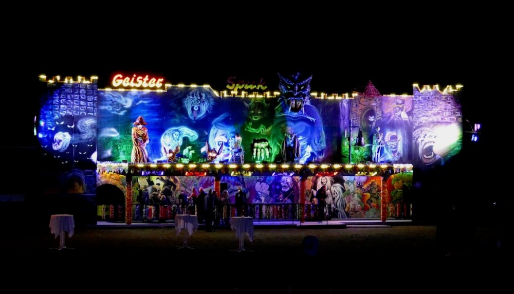 Eine echte Volksfest-Geisterbahn und ein Kinderkarussell stand auf dem Reitplatz für die Besucher bereit. Ein herrlich schauriges Vergnügen.