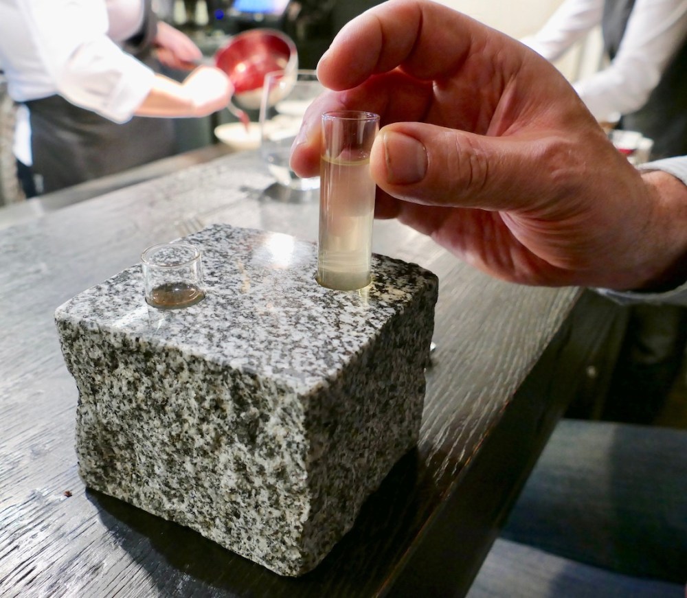 Wir hatten von unserem Platz aus wieder den idealen Einblick in die offene Küche und sahen begeistert zu, wie die einzelnen Gänge direkt vor uns filigran angerichtet wurden. Das allein ist ein Erlebnis.