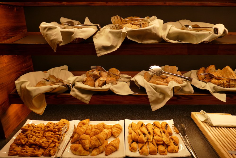 Beim Übernachtungspreis ist das umfangreiche Frühstücksbuffet inklusive. Es gibt einen ganzen Brotschrank mit einer tollen Auswahl. Frisches Obst, Joghurt, Müsli, Aufstriche, Säfte, regionale Käse-, Wurst- und Schinkensorten. Die Eierspeisen werden frisch zubereitet, den Cappuccino holt man sich selbst am Kaffeeautomaten.