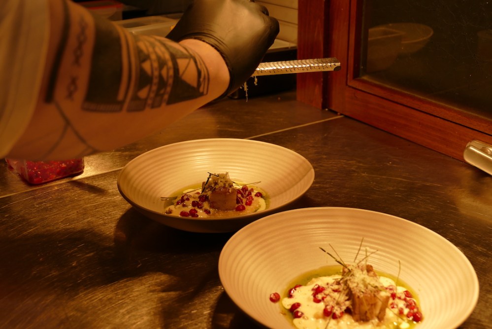 Warme Vorspeise: Short Rib – Graupe – Bergkäse – Granatapfel