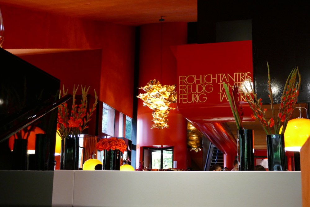 Im indisch-buddhistischen Kulturkreis bedeute „Tantris“ Vollkommenheit. Beim Betreten taucht man in eine ganz andere Welt ein. Voller Wärme. Die Wände, die Decke alles in plüschigem Orange ausgekleidet.