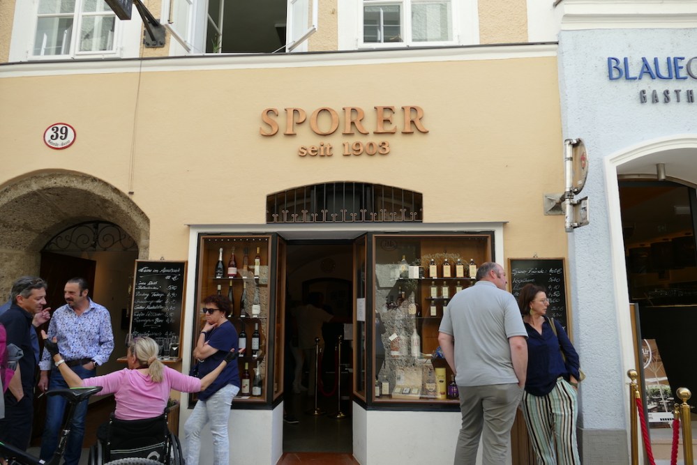 Fast am Ende der Getreidegasse befindet sich im schmalsten Haus, kurz vor dem Hotel-Restaurant Blaue Gans, noch eine weitere Institution, das Spirituosen- und Weinfachgeschäft der Likör- und Punschmanufaktur Sporer. Das Traditionsunternehmen gibt es seit 1903 und wird nunmehr in vierter Generation von Michael Sporer geführt. Hausklassiker sind die nach alten Familienrezepten kreierte »Hausmischung«, ein feiner Kräuterlikör, und der Orangenpunsch nach einem Originalrezept der Oma aus dem Jahre 1927. Hier unbedingt auf ein Glaserl einkehren und den Orangenpunsch mitnehmen.