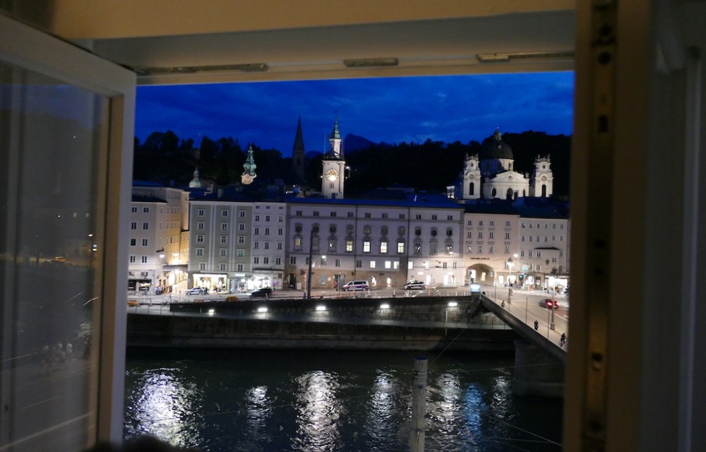 Aber diesmal wollten wir auf unserer kulinarischen Reise die einzigartige Altstadt auch bei Nacht erleben und im Zentrum übernachten. Da soll es natürlich etwas Besonderes sein, am besten mit einem genialen Blick auf die Altstadt und die Festung Hohensalzburg.