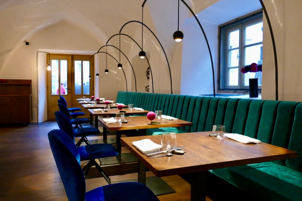 Das Restaurant flurin hat uns allein schon wegen der tollen Einrichtung in dem einzigartigen, historischen Ambiente überzeugt. Die Anrichten des Bestecks auf dem länglichen Stein – klasse. Und erst das Menü – sowas von lecker. Und dazu auch ein richtiger Augenschmaus.