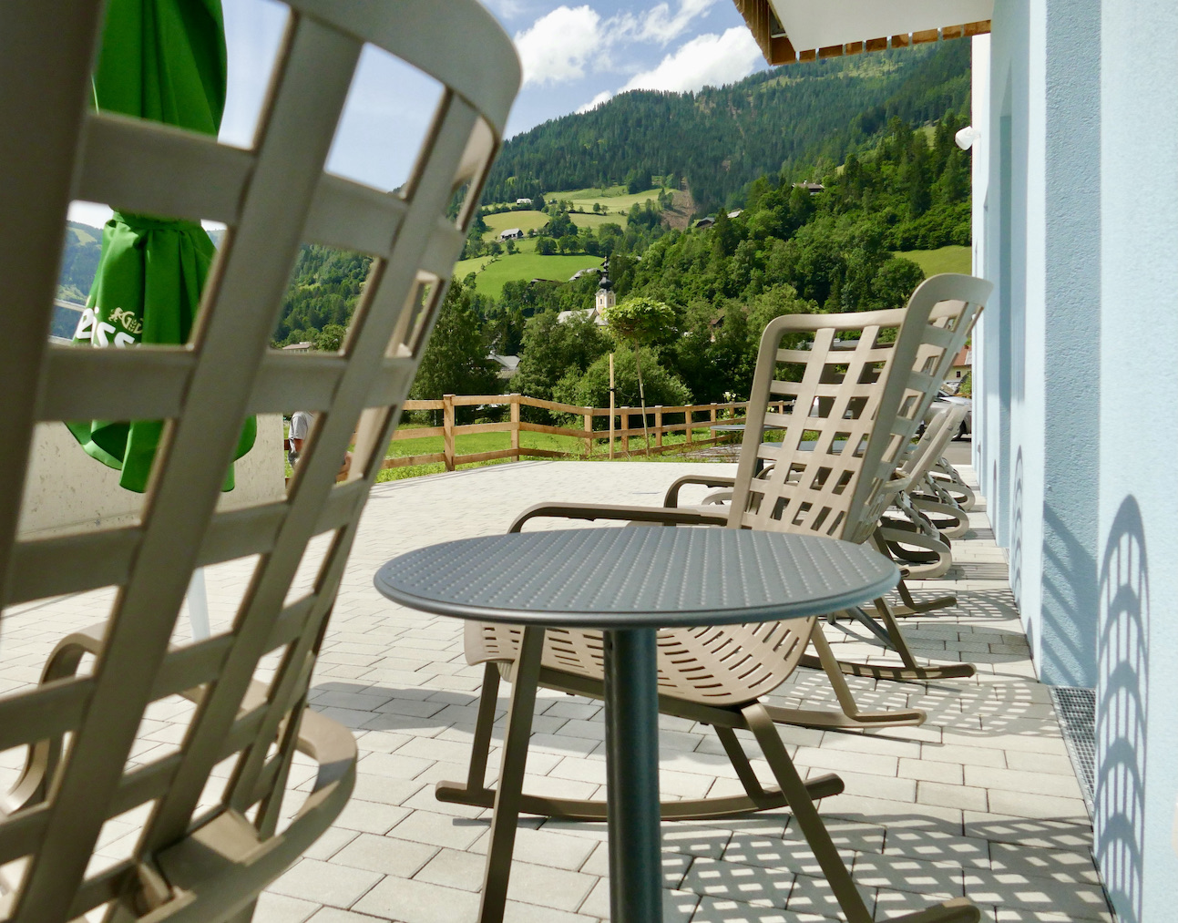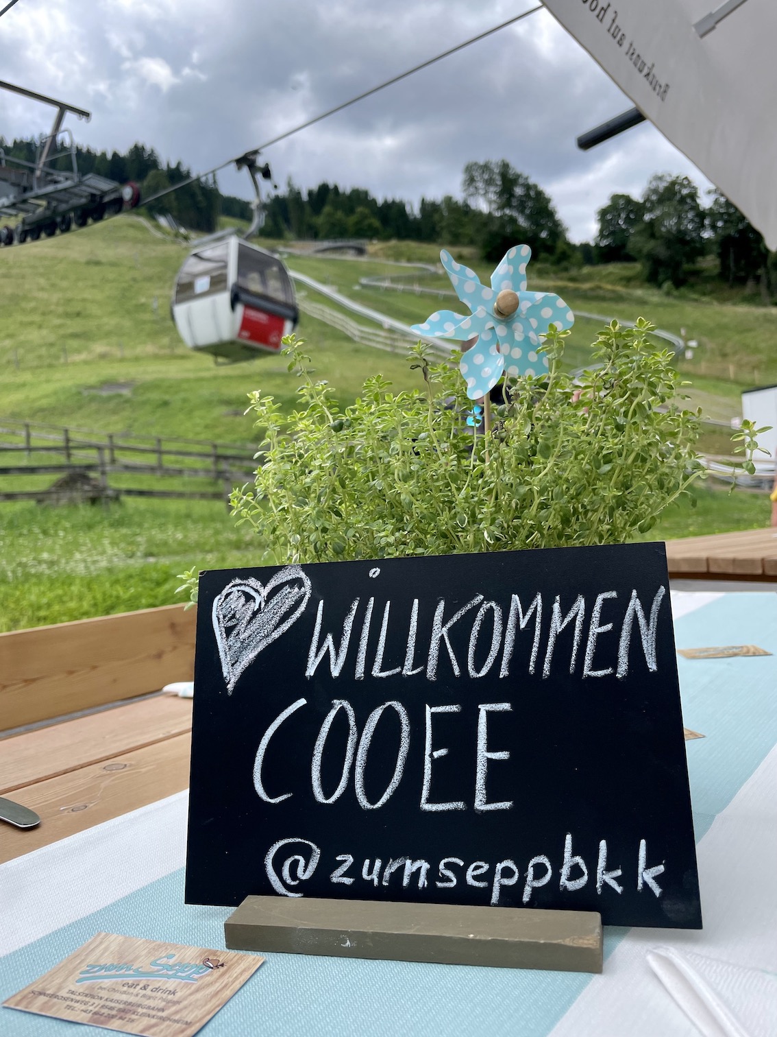 Auf der Sonnenterrasse können auch Nicht-Hotelgäste einkehren, für einen Drink, wie die hausgemachte COOEE-Limonade oder den mega-leckeren COOEE-Pulled Pork Burger von der Snackkarte. Der Fussweg zur Kaiserburgbahn läuft vom Parkplatz direkt am Hotel entlang.