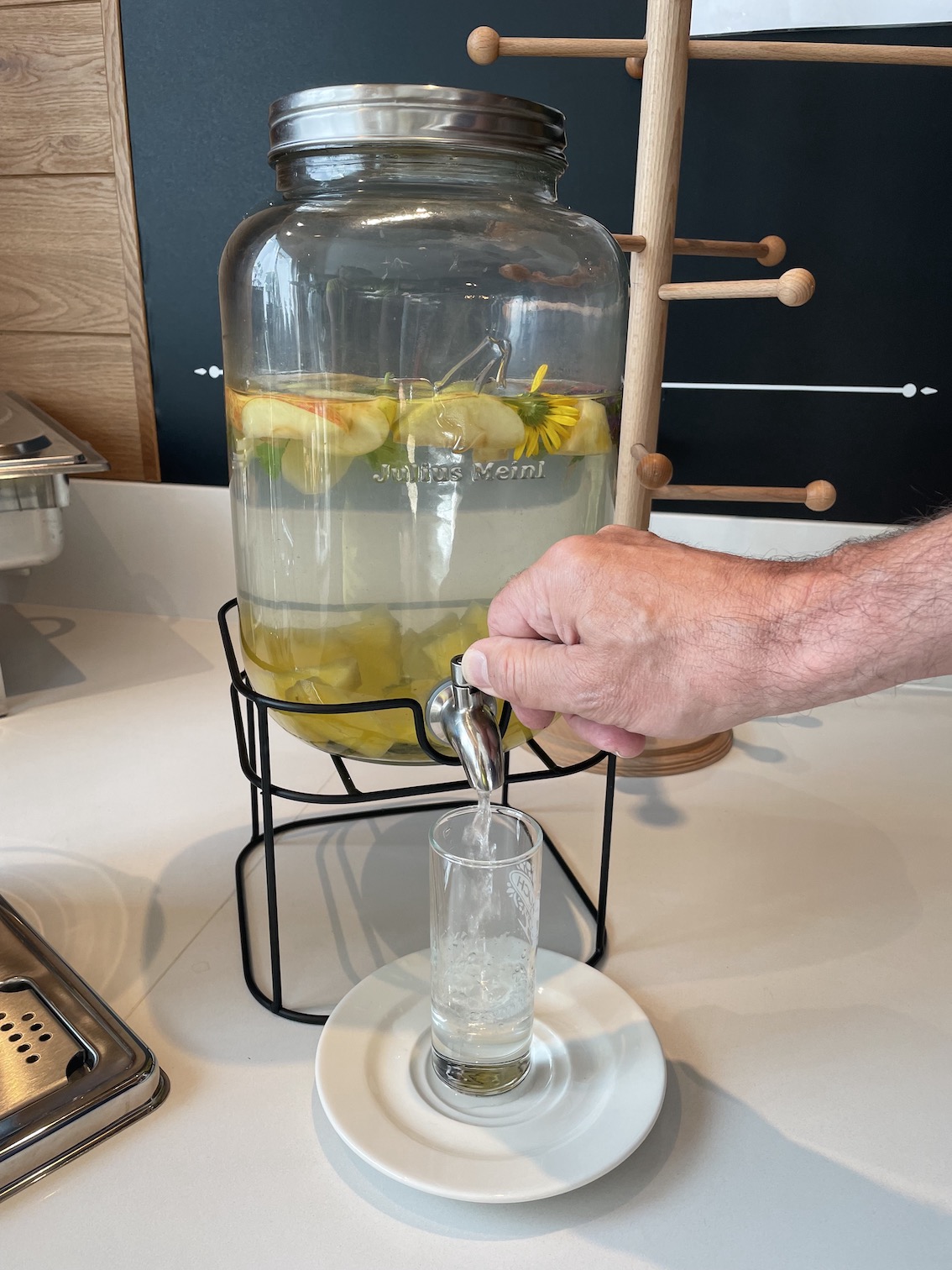 Sogar mit frischem Obst und erfrischenden Getränken.