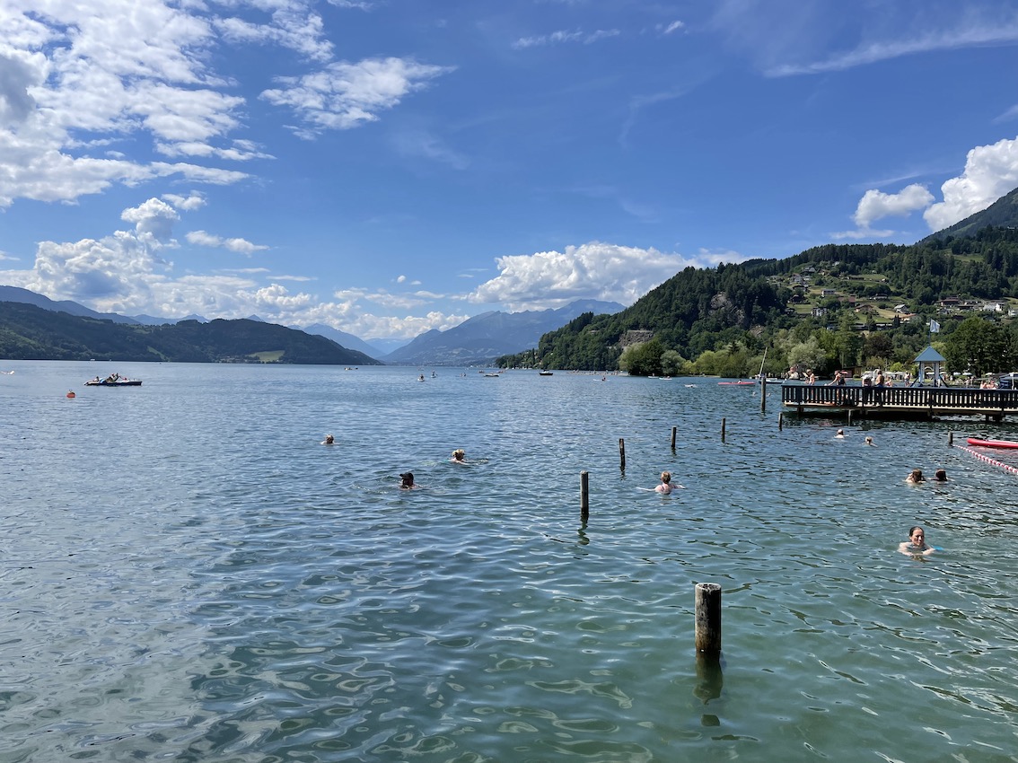 Mit den Nockmobilen sind es ca. 20 Minuten vom Hotel zum Millstätter See. Nutzt die Gelegenheit und erfrischt euch in Kärntens zweitgrößtem See.