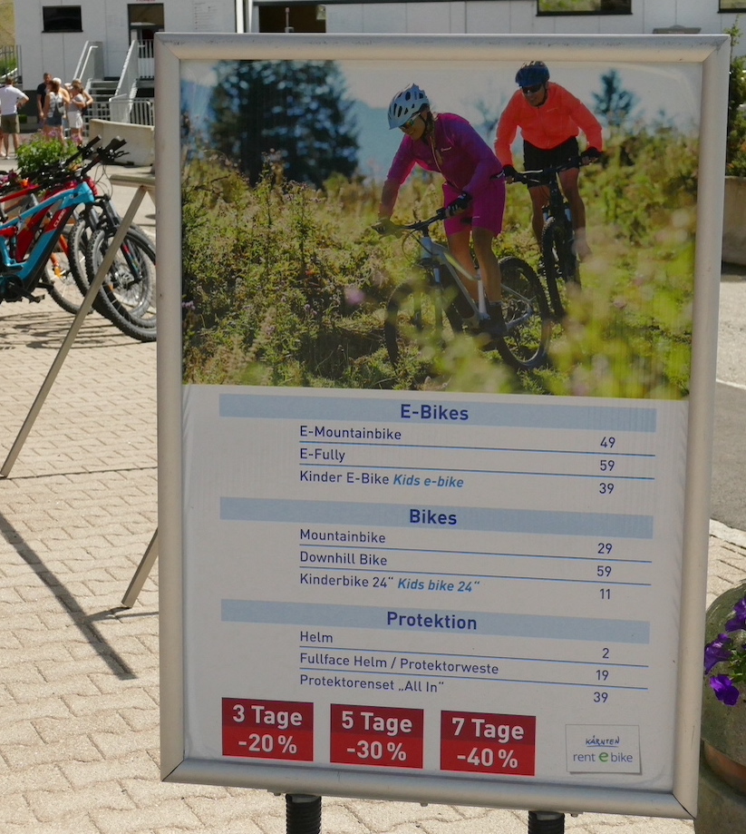 Mountain-Bikes, E-Bikes oder Kinderräder könnt ihr inkl. Protektoren direkt an der Bergstation ausleihen.