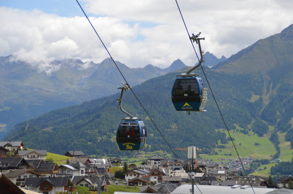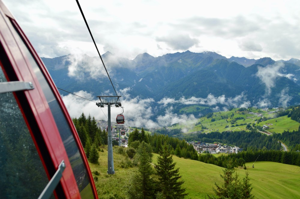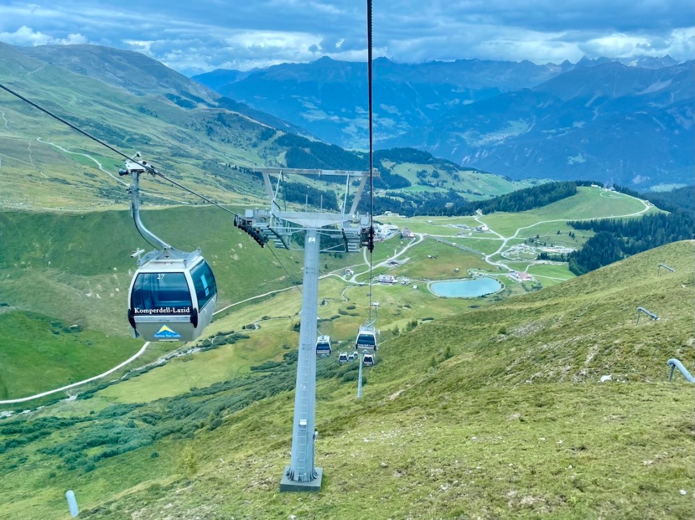 Wir fahren mit der Gondelbahn zum Ausgangspunkt zurück und steigen in die nächste Bergbahn, die Möseralmbahn.