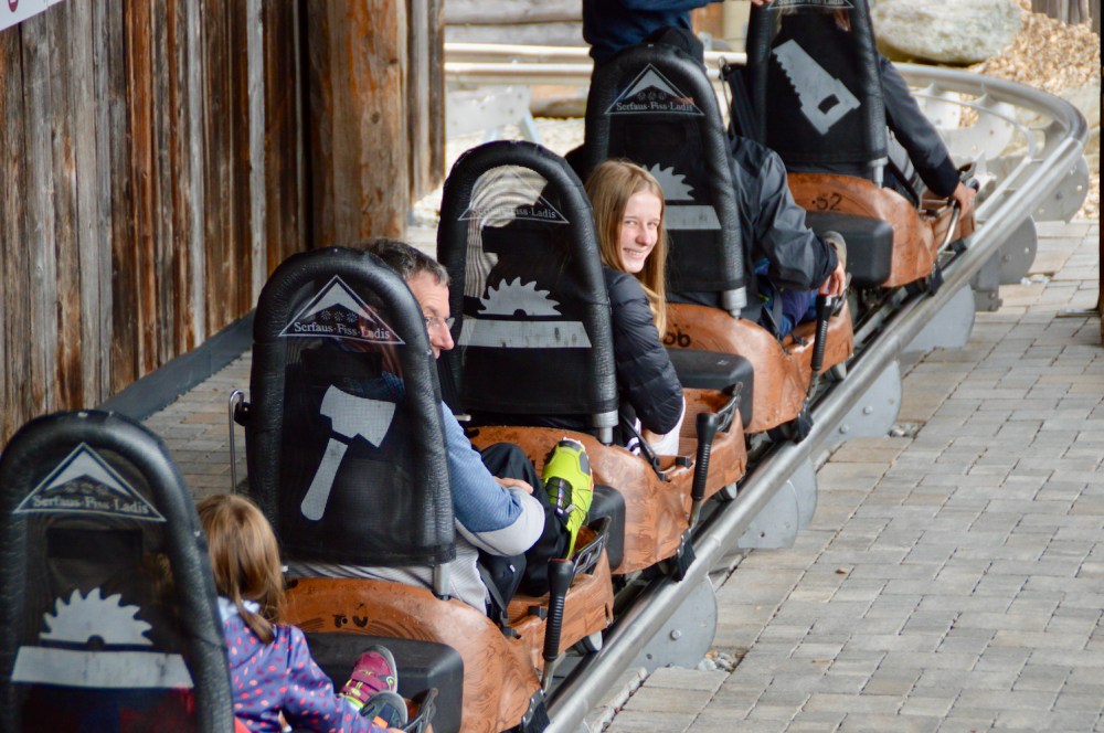 Es ist echt für jeden was geboten: Die Mutigen sausen mit dem Serfauser Sauser hinunter ins Tal, die Aktiven wandern oder haben Aktion im Bikepark und die Genießer nehmen die Gondel. Mit der Bergbahn Sunliner geht es runter nach Serfaus.