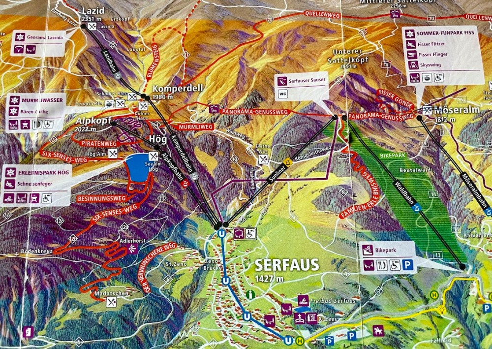 Das gesamte Gebiet ist so gut erschlossen und mit einem Netz aus Bergbahnen und Wanderbus miteinander verbunden, dass ihr getrost euer Auto beim Chalet stehen lassen könnt. Es gibt in Serfaus sogar die höchstgelegene auf Luftkissen schwebende U–Bahn der Welt.
