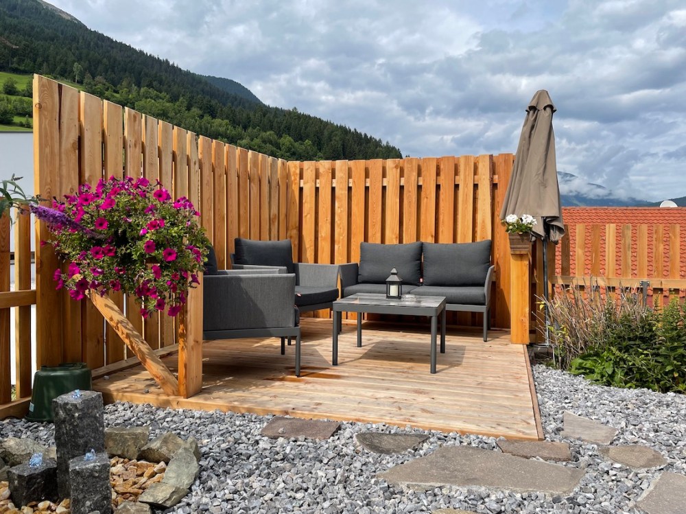 Das war wirklich unser Lieblingsplatz’l. Wir lieben es in der Früh aus dem Bett durch die großen Panoramafenster zu schauen und gleich die umliegenden Berge zu sehen.