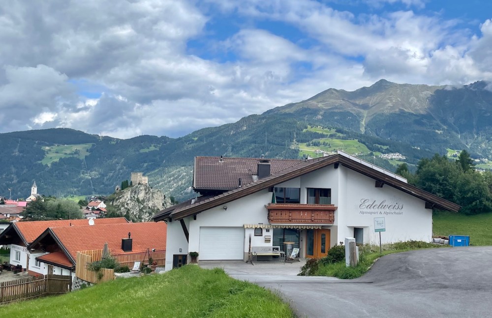Ausgestattet mit dem Hausschlüssel und allen nötigen Informationen starten wir zu unserem Alpinchalet Edelweiss am Ortsausgang, gleich gegenüber der Sonnenbahn Ladis-Fiss