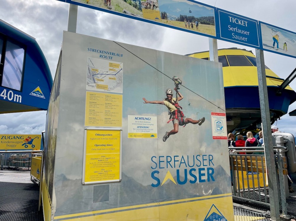 Bevor es mit der nächsten Bergbahn wieder nach oben geht, könnt ihr euch direkt an der Talstation in Serfaus am „Heißen Draht“ versuchen. Hier endet auch der Serfauser Sauser.