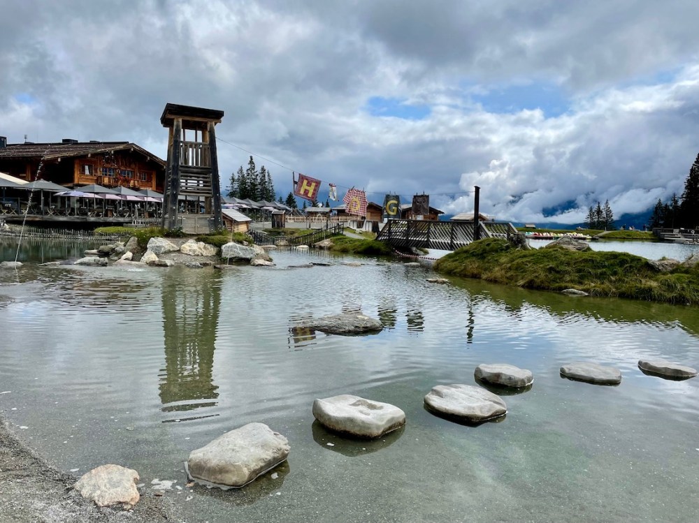 Das Wasserlabyrinth und diese Wackelsteine durch das Wasser haben eine magische Anziehungskraft.