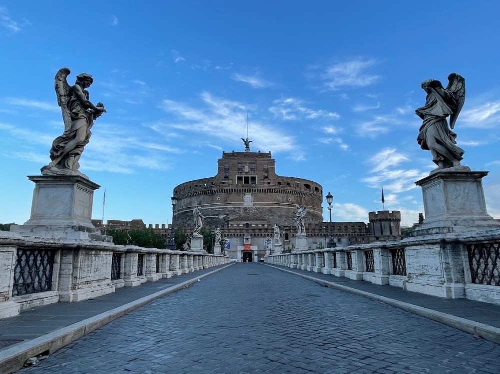 Diesen Blick von der Brücke auf die Engelsburg habe ich mir auch mehrmals gegönnt. Abends bei Beleuchtung, früh morgens fast allein und mittags im Trubel. Iluminati-Erinnerungen werden wach.