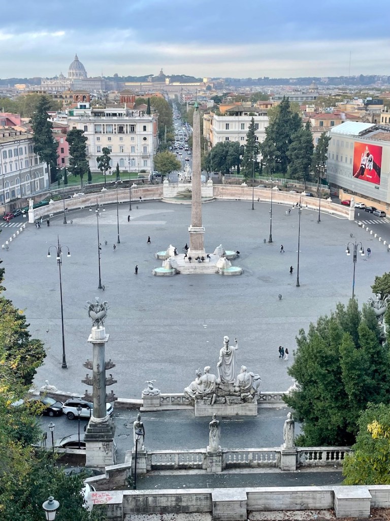 Der berühmte Piazza del Popolo, der Platz des Volkes, ist vom Hügel Pincio besonders gut zu sehen. Einfach ein paar Stufen nach oben und die Aussicht über Rom genießen.