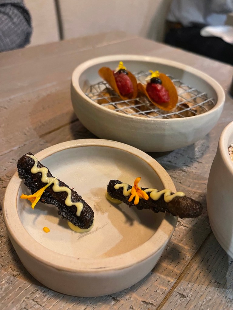 2016 zum besten Sommelier Deutschlands gekürt kennt sich Timo Weisheidinger natürlich bestens mit Weinen aus. Die Nachfrage nach einer alkoholfreien Begleitung hat ihn jedoch dazu veranlasst selbst eigene Getränk, abgestimmt auf den jeweiligen Gang, anzubieten. Wir sind ja regelrechte Fans der aufwendig zubereiteten und kreativ kombinierten Kreationen von Timo, daher für uns ein Muss beim Überraschungsmenü.