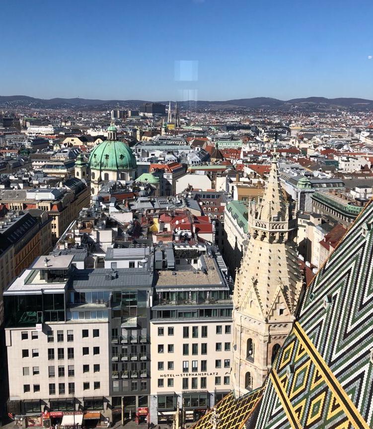 Der höchste Turm ist der 136 m hohe Südturm. 343 Stufen führen hinauf zur Türmerstube und zu dieser gigantischen Aussicht über Wien.