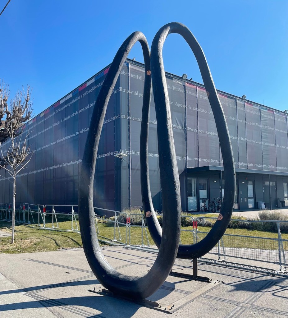 Vorbei an diesem modernen Corona-Denkmal am Heldenplatz