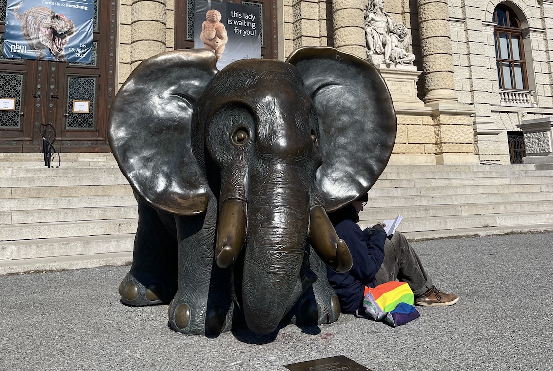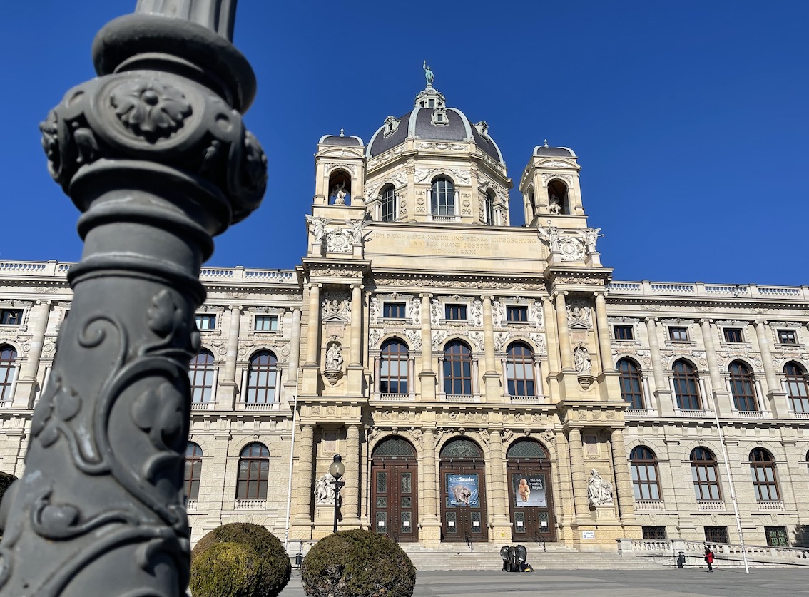 Vorbei am Maria-Theresia-Denkmal, am Kunsthistorischen Museum und am Naturhistorischen Museum mit der Elefanten-Skulptur vor dem Eingang.