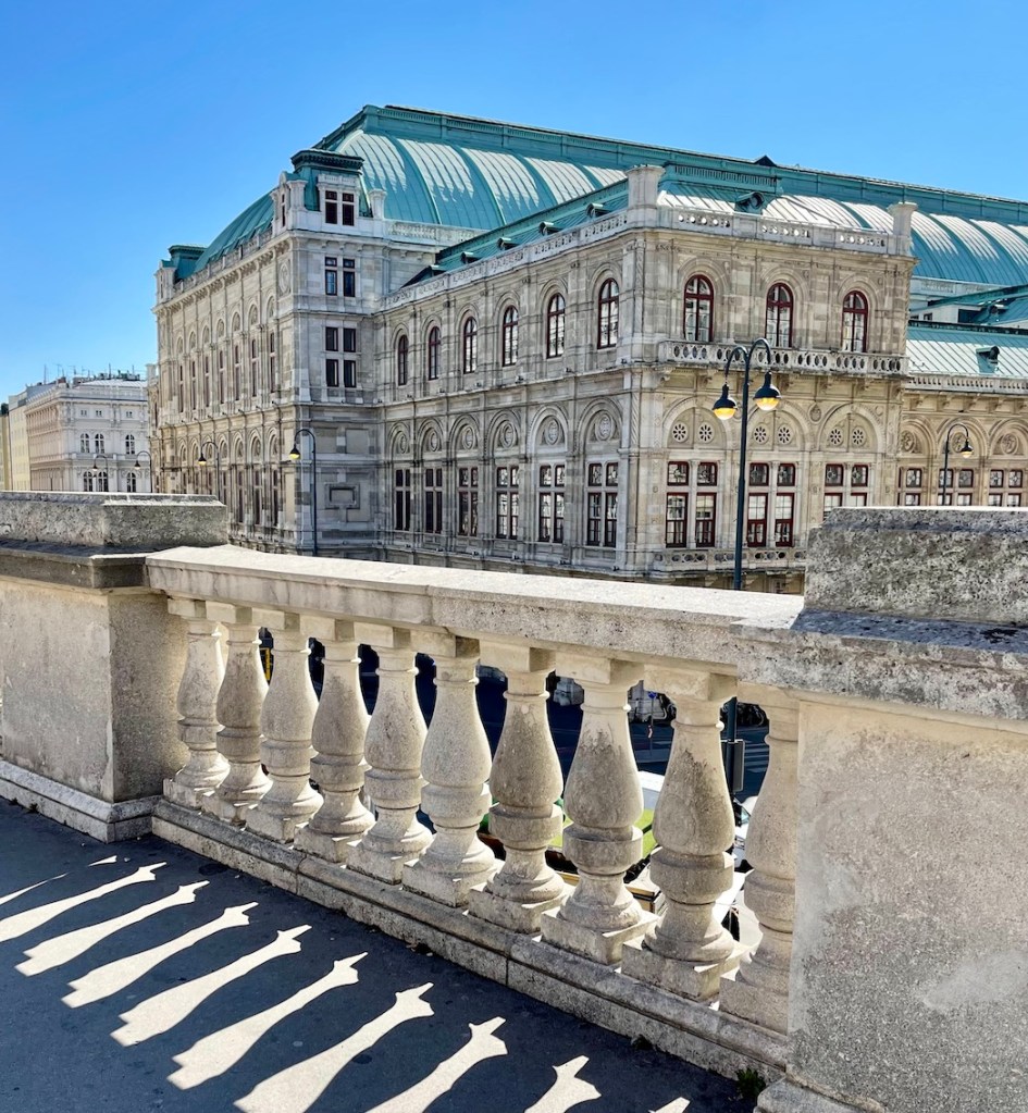Von der Albertina sieht man direkt auf das gegenüberliegende Hotel Sacher.