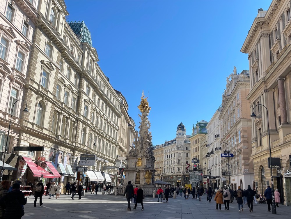 Die älteste Fußgängerzone Wiens ist die Kärntner Straße. Der Graben ist eine weitere exklusive Prachtstraße der Fußgängerzone im Herzen der Innenstadt mit der Pestsäule.