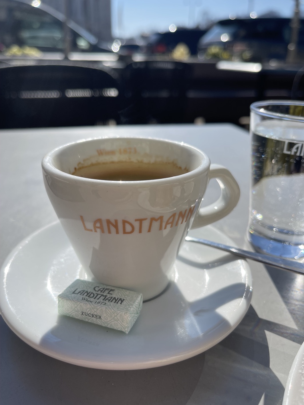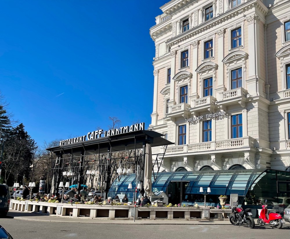 Hier dann gleich das erste Aha-Erlebnis, ich seh von Weitem schon das elegante Wiener Kaffeehaus Cafe Landtmann. Ist schon Zeit für einen ersten kulinarischen Stop?