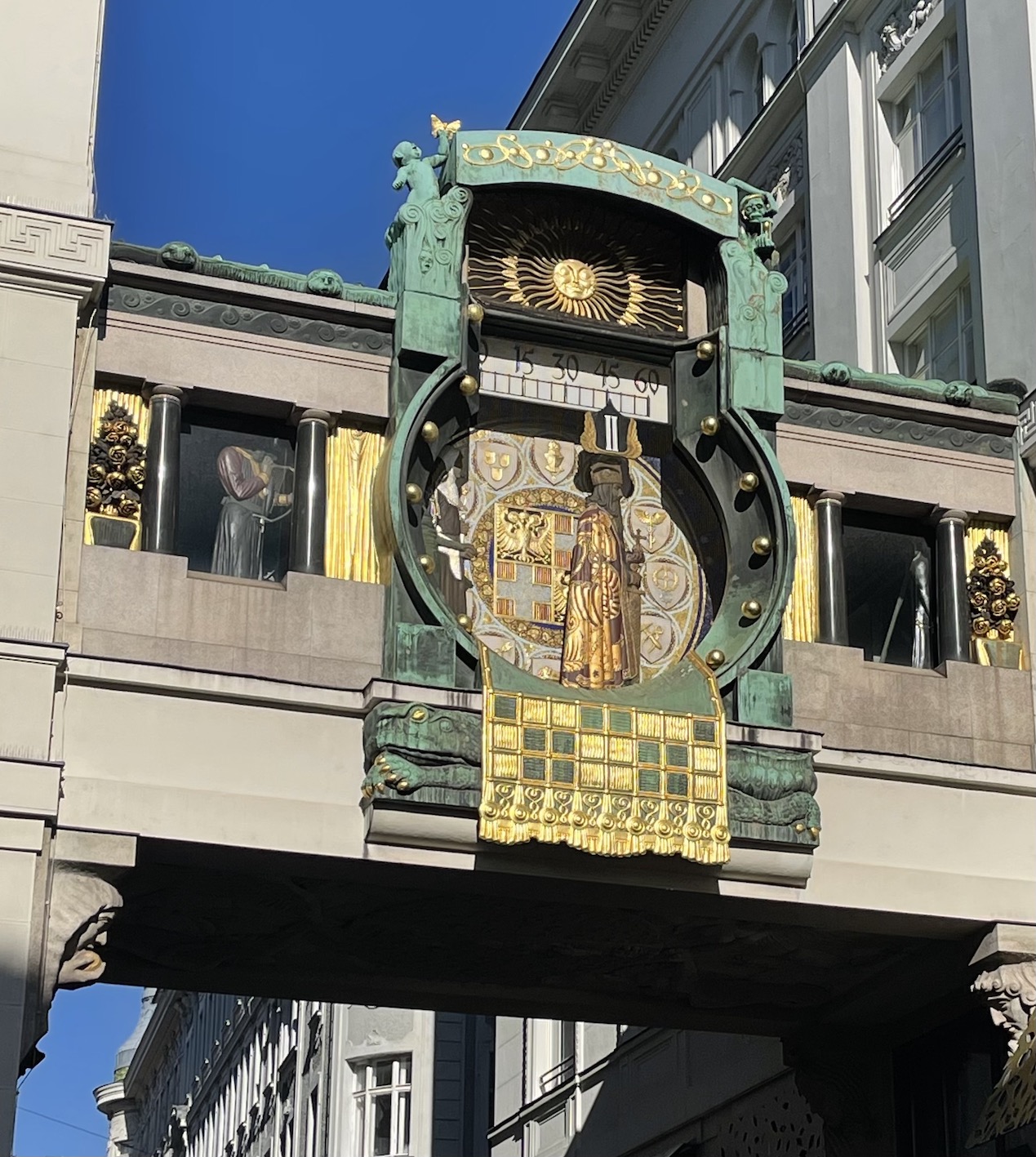Ich hab mir zwar von dem Figuren-Wechsel mehr erwartet, aber vielleicht war ich einfach zum falschen Zeitpunkt vor Ort. Um 12:00 Uhr mittags sollen ja alle 12 Figuren – alles bedeutende Wiener Persönlichkeiten – einmal durchziehen.