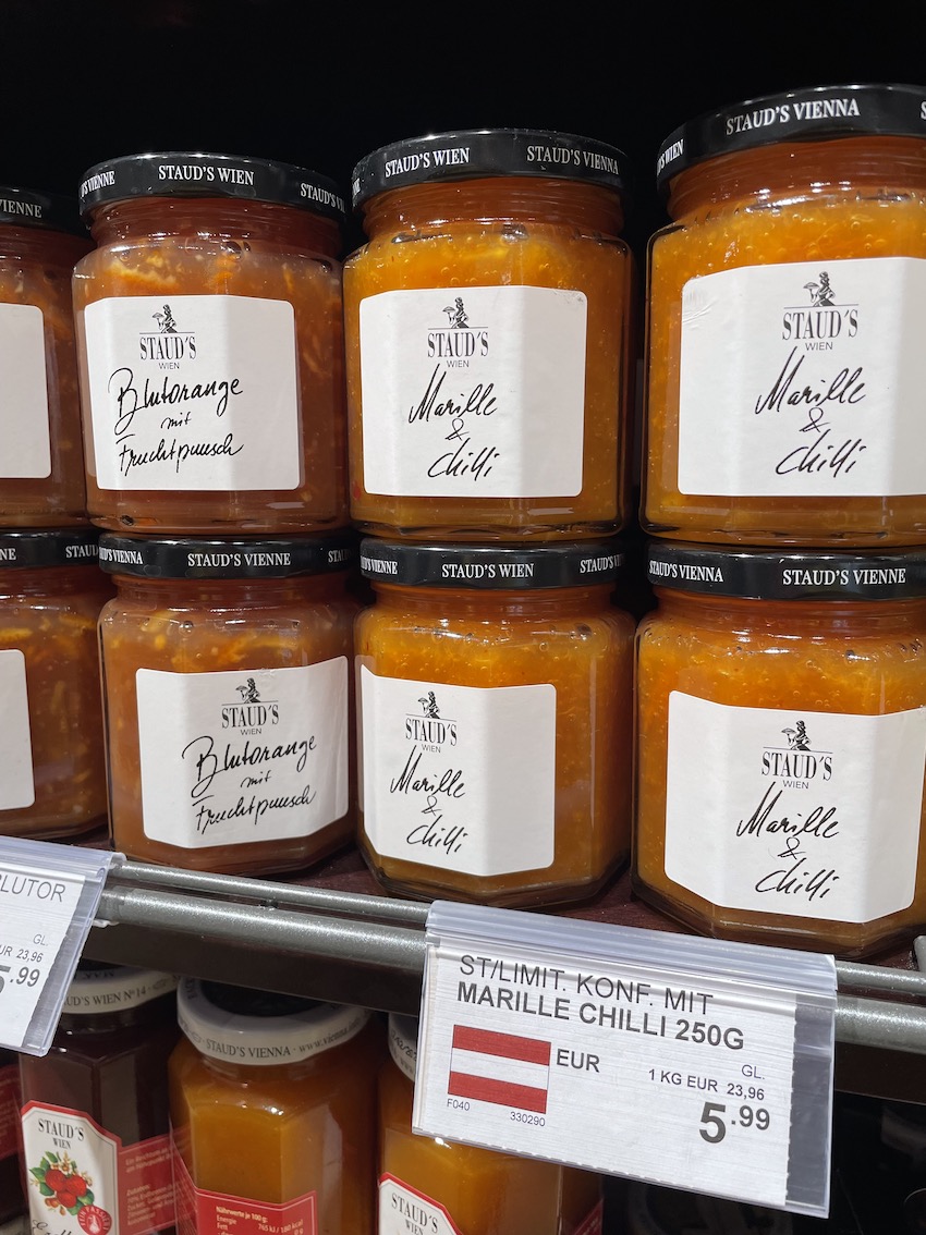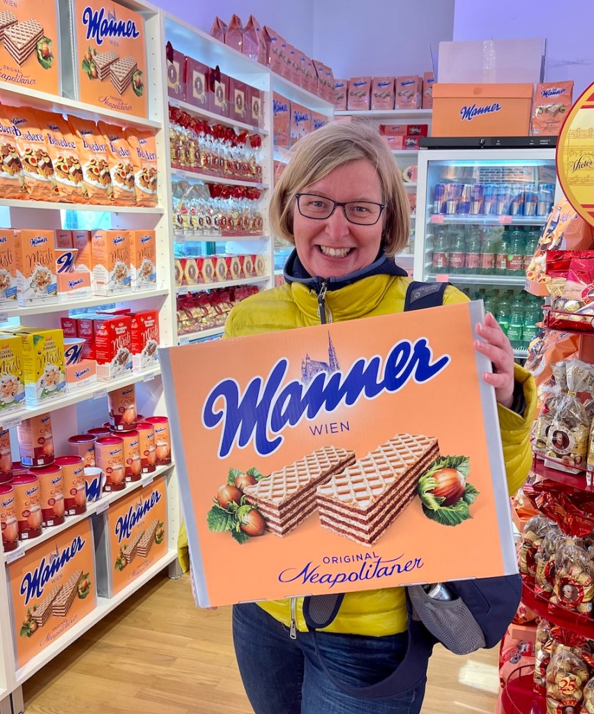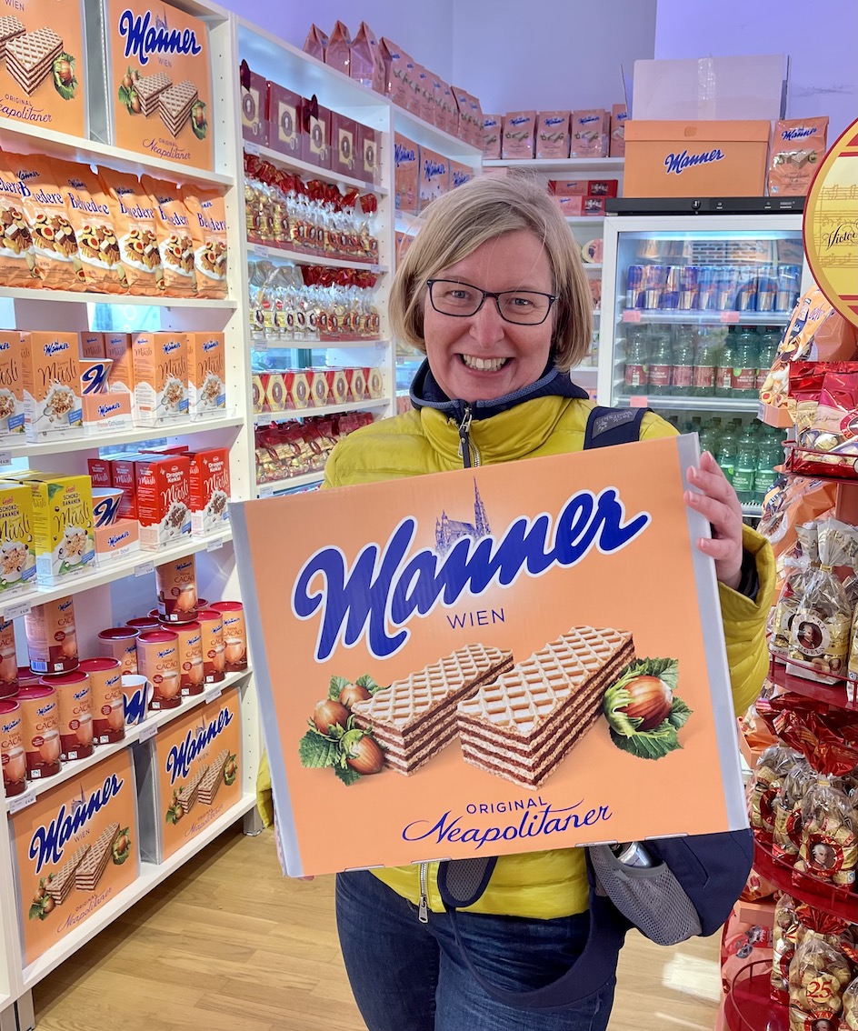 Ich liebe ja die fruchtigen Marmeladen von Stauds mit Marille in verschiednen Varianten, mmmh. Nehmt euch auch ein Stück Wien, in Form von Manner-Waffeln, mit – es muss ja nicht gleich diese XXL-Packung sein.