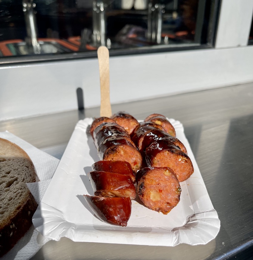 Gönnt euch einen scharfen Käsekrainer mit Brot.