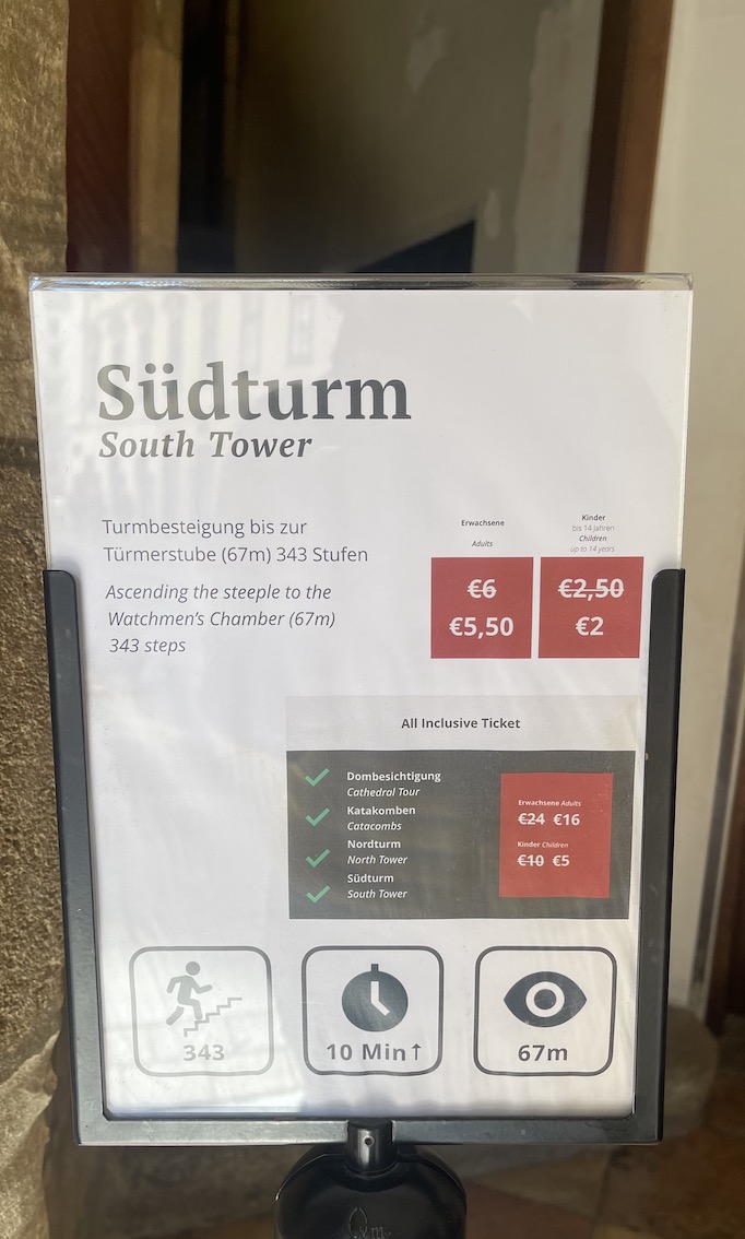 Mit 6 Euro bist du bei der sportlichen Herausforderung dabei. Weniger als 10 Minuten dauert der Aufstieg. Es geht auf dem identischen Weg auch wieder zurück.