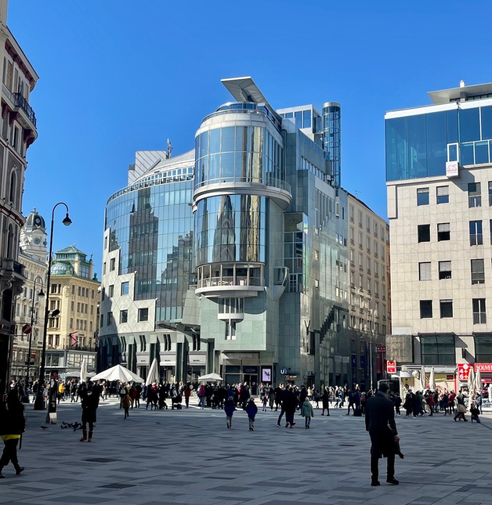 Das Haas-Haus, in dessen moderner Glasfassade sich der Stephansdom spiegelt, wurde von Stararchitekt Hans Hollein entworfen.