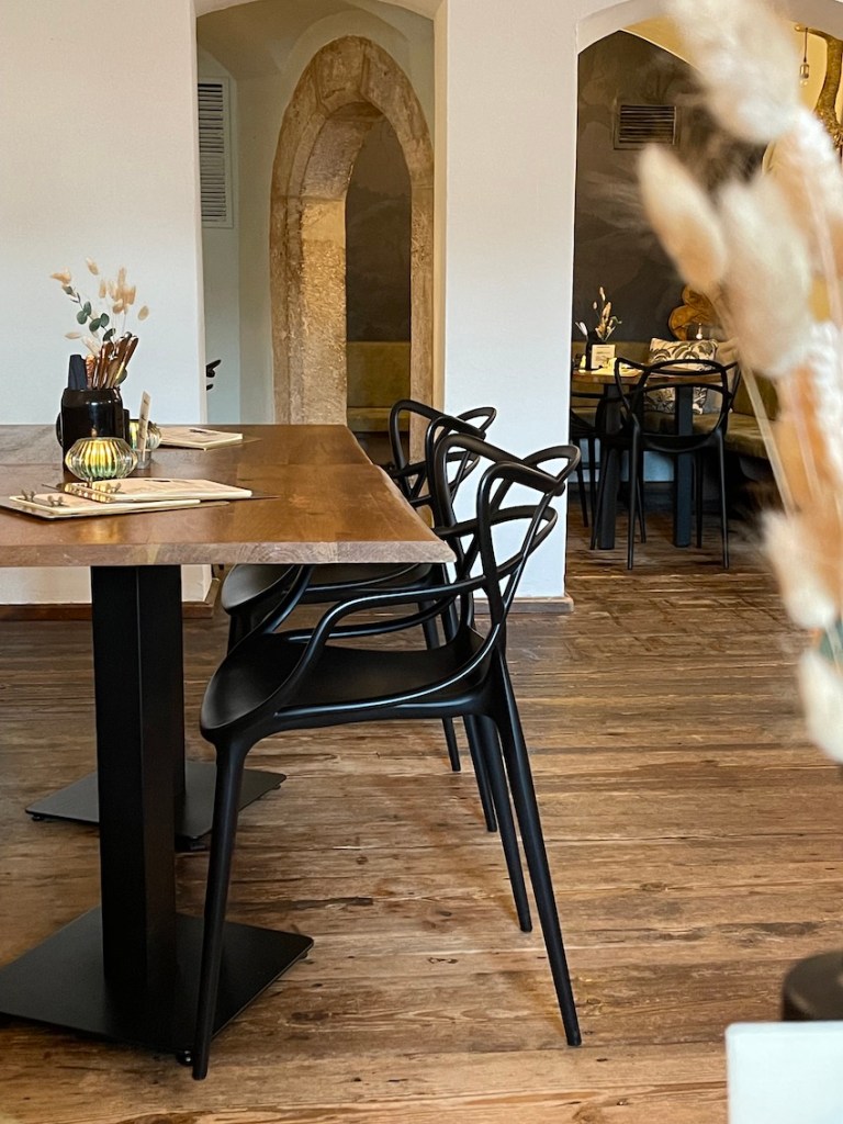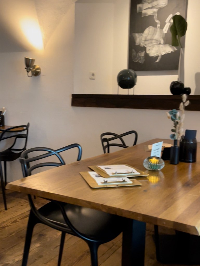 Bei unser vorletzten Besuch haben wir einen Tisch im chilligen Innenhof reserviert. Auch sehr idyllisch. Aber unser Favorit ist ein Tisch im Gewölbe.