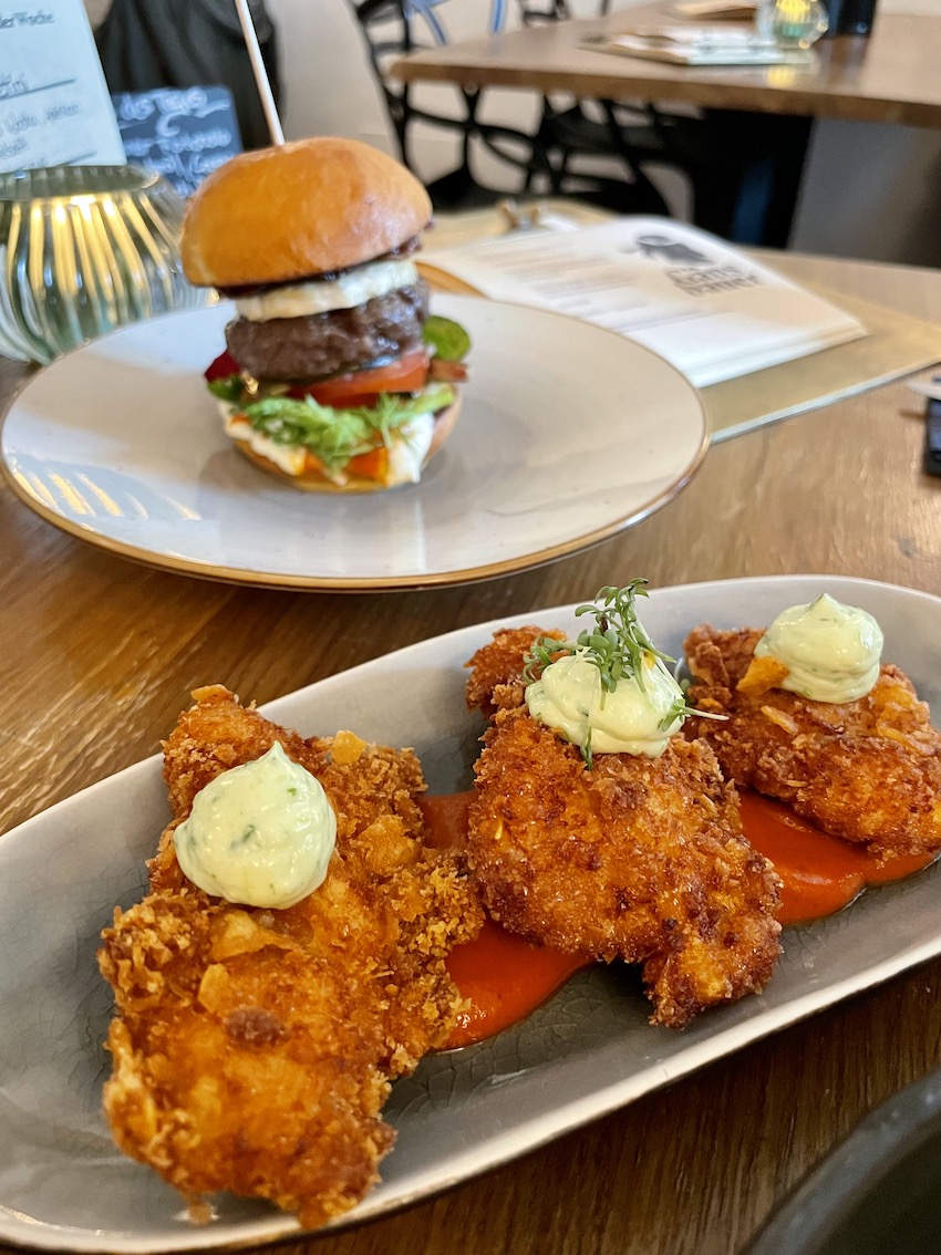 Gänsburger 2.0 mit Ziegenkäse, Knusper Maishähnchen, Garnele, Karpfen,