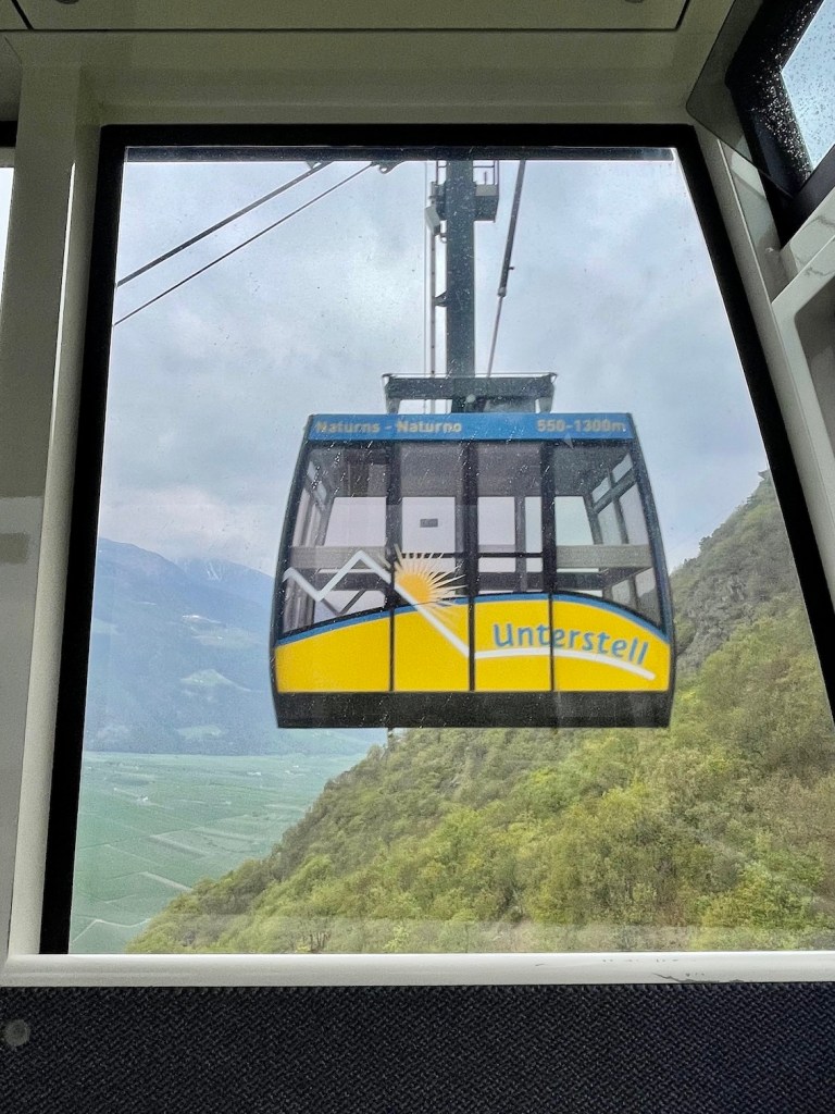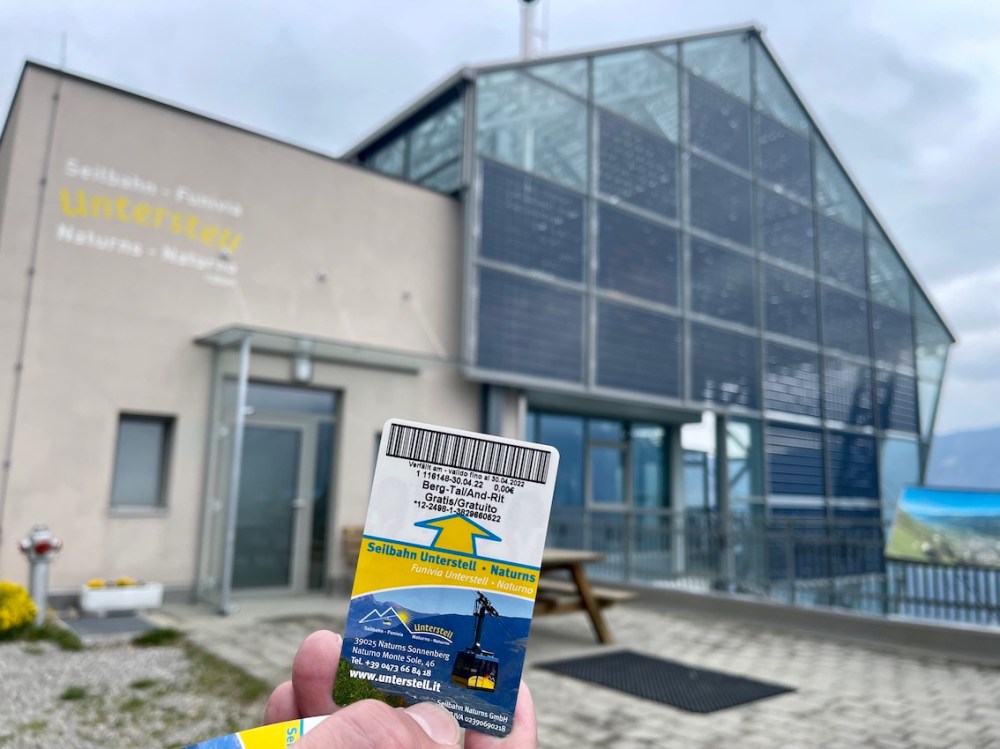 Die Seilbahn Unterstell in Naturns bringt euch in nur wenigen Minuten von 550 m auf 1.300 m. Die Kasse ist oben an der Bergstation.