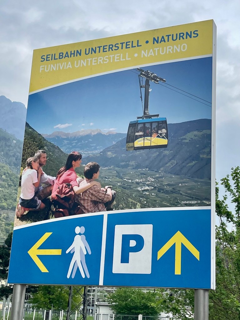 Als Alternative zu unserer geplanten Wanderung haben wir bei der Seilbahn Unterstell kostenlos geparkt und sind hoch zur Aussichtsplattform.