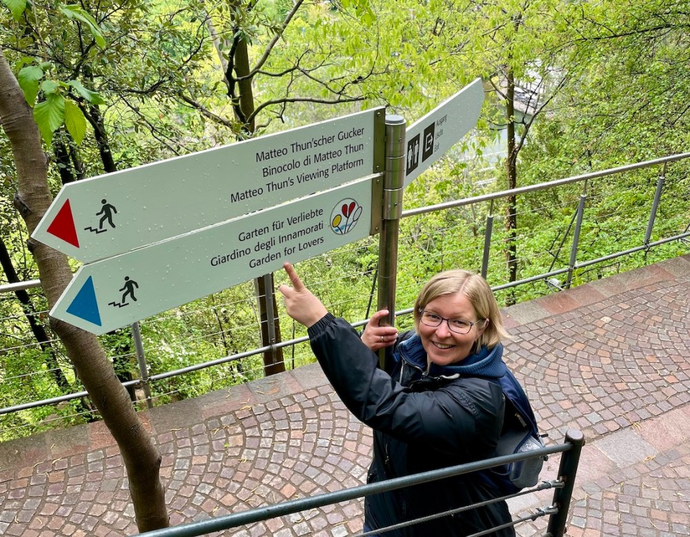 Jetzt geht es über die Postbrücke zurück, durch das Bozner Tor, hinein in die schmalen Altstadtgassen. Kurz nach der Stadtpfarrkirche biegen wir links ab und erklimmen über den Tirolersteig den Tappeinerweg.