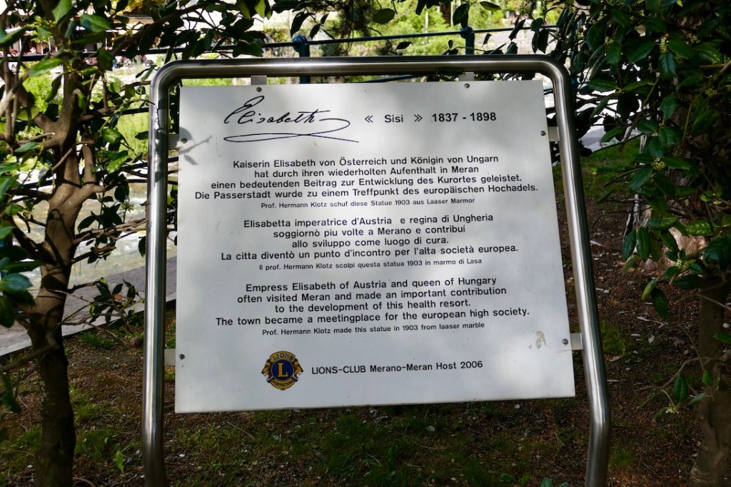 Das Denkmal des wohl berühmtesten Kurgastes in Meran, Kaiserin Elisabeth von Österreich.