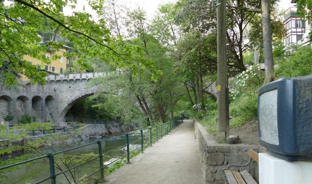 Wir wechseln die Seite und überqueren die Passer über die Thermenbrücke, Richtung Therme Meran. Wenn das Wetter nicht so traumhaft wäre, eine gute Alternative.