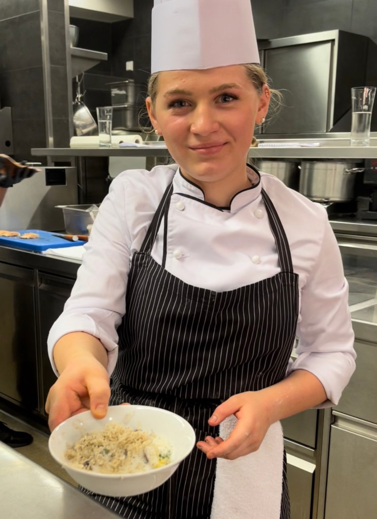 Die verschiedenen Hauptspeisen konnte man sich direkt in der offenen Küche an den einzelnen Stationen vom jungen Küchenteam anrichten lassen.