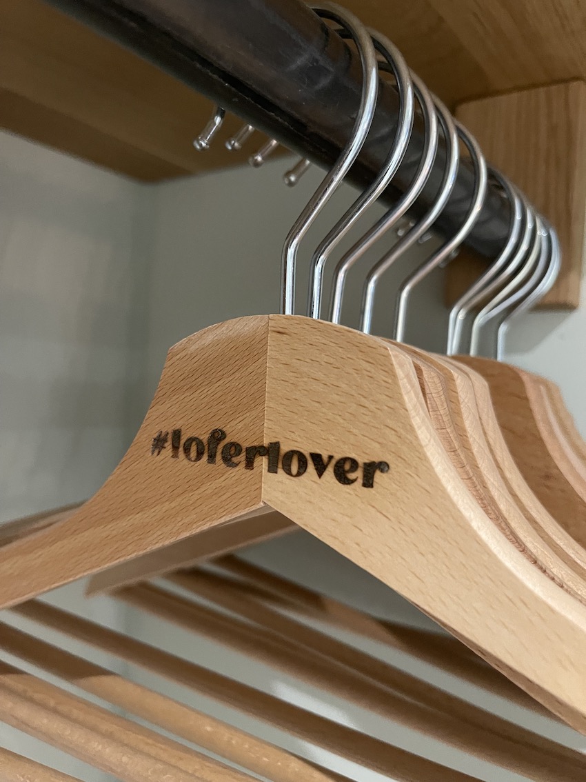 Im offenen Schrank hängt neben den #loferlover Kleiderbügeln schon der Wanderrucksack. Alles ist bereit für eure Abenteuer in der Natur.