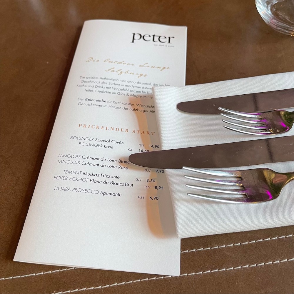 Die Bezeichnung St. Peter Stiftskulinarium vereint gleich drei Restaurants: Peter, Haubenlokal 803 und die Outdoor-Lounge. Das Gebäude am Fuße des Mönchsbergs wurde zum Teil in den Fels hineingebaut und liegt direkt zwischen Dom und Festspielhaus.