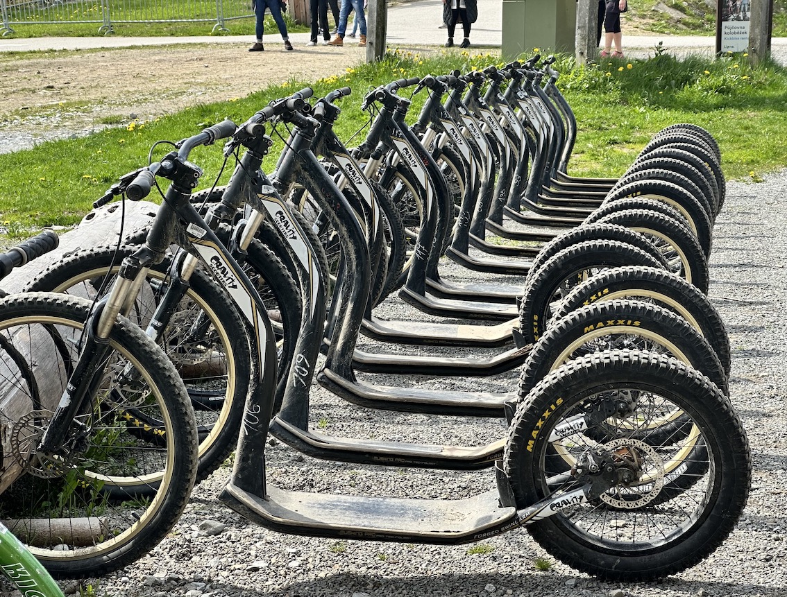 Die Roller könnt ihr euch oben, gegenüber von der Liftstation, ausleihen und unten im Tal wieder abgeben.