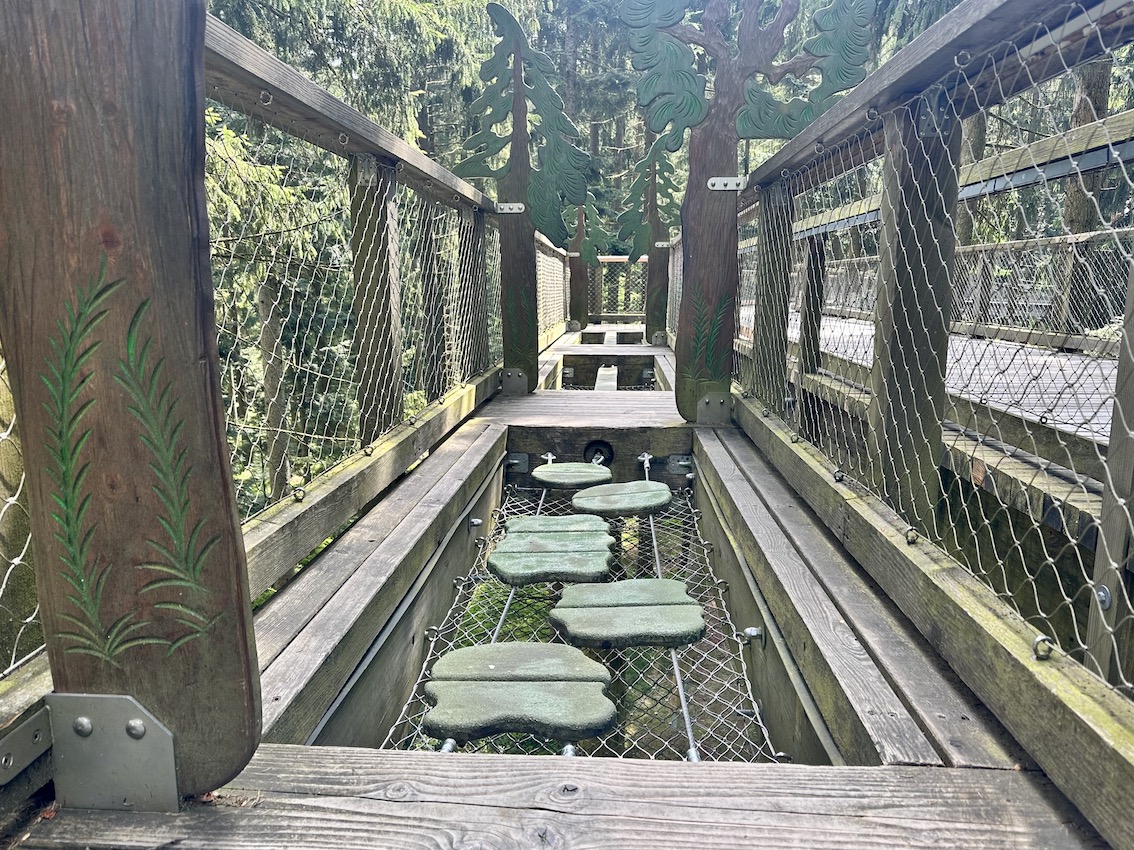 Nach oben zum Eingang des Waldwipfelpfades könnt ihr den Sessellift nehmen, mit dem Bus fahren oder den ca. 900 m hohen Kramolin-Berg erwandern. Beim Kombiticket ist auch der Eintritt für den großen Abenteuerspielplatz „Königreich des Waldes“ enthalten. Die Ticketautomaten findet ihr im Infocenter beim Parkplatz.