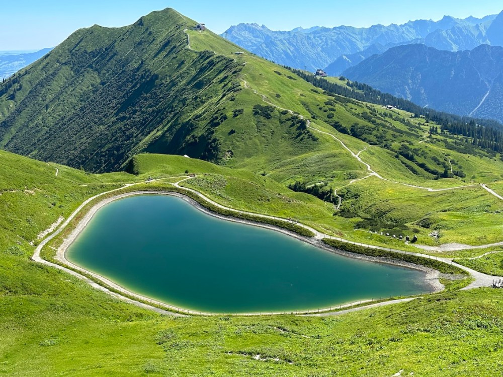 Schließlich warten noch ganz viele Berggipfel mit den tollen Adler-Bänken auf uns, der Herzsee, die Panoramabrücke auf dem Walmendingerhorn mit dem Klangplatz darunter und mindestens ein Kaiserschmarrn mit Bergblick.