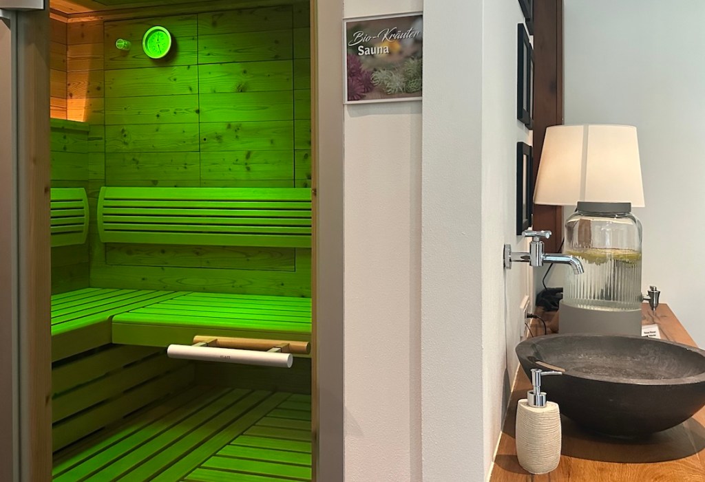 Marmorwärmestühle mit Tiefenwärme für die Muskulatur, Infrarot sowie eine Wellnessdusche und Kneippbecken garantieren euch vielseitige Relax-Möglichkeiten.