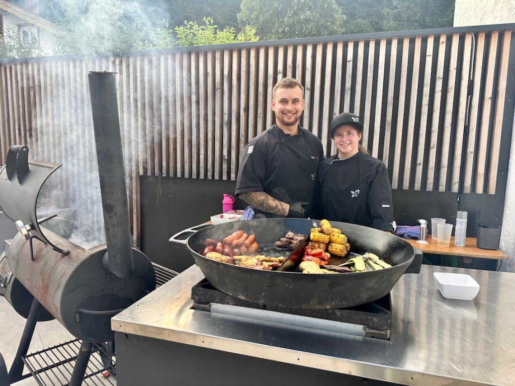 Einmal pro Woche wird auf der Terrasse der große Grill angeworfen.